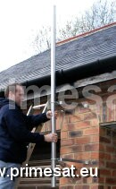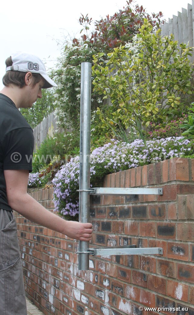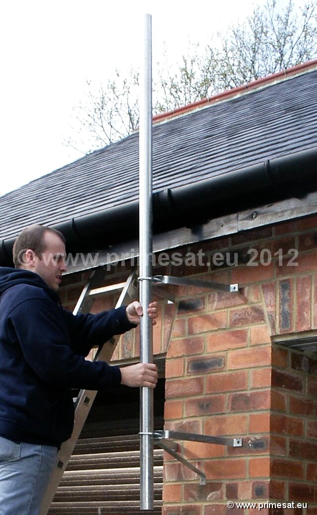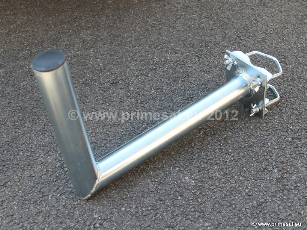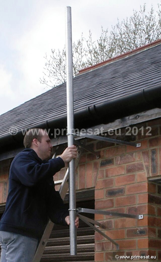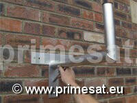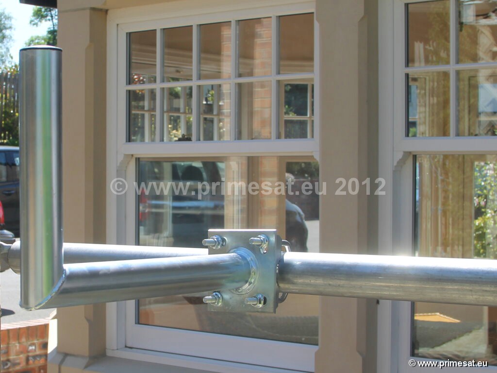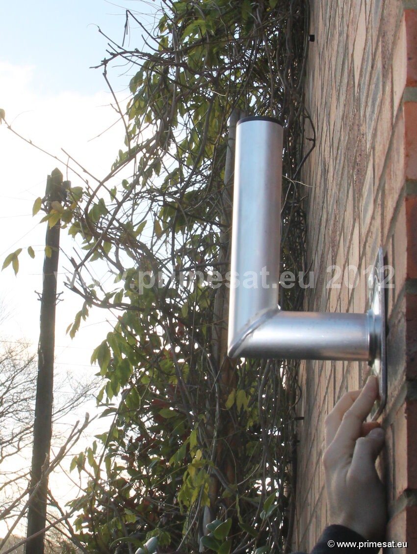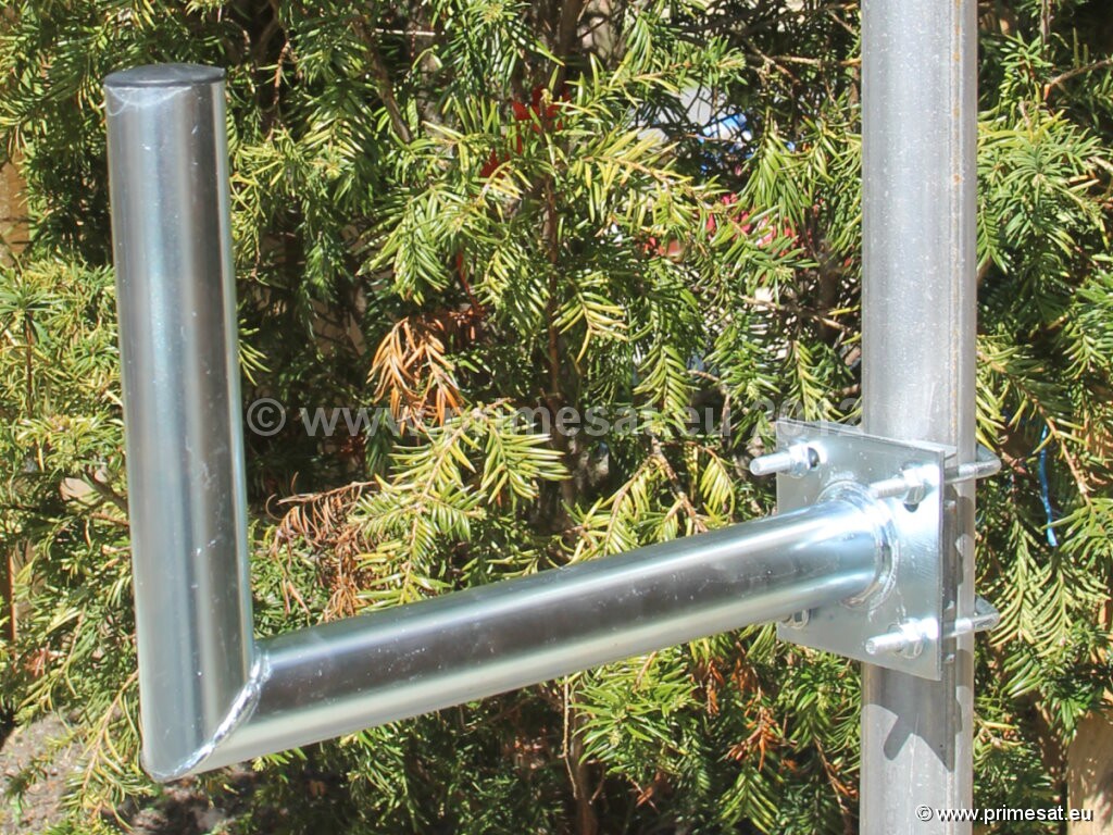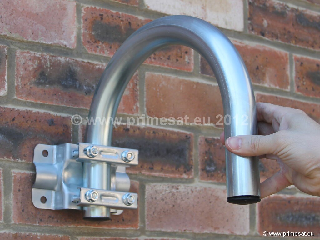 Wall MountMaterial - Aluminium.Construction. Welded AluminiumStand off distance 150mm to inside of pole.Pole diameter 48mmFixing method - 4 X coach bolts and plugs into the wall.Dish size - Ideal for 50 - 80cm dishes and 90cm dishes if facing south