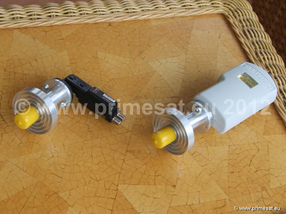 Invacom feedhorn with yellow cap for prime focus dishes. INVFEED.