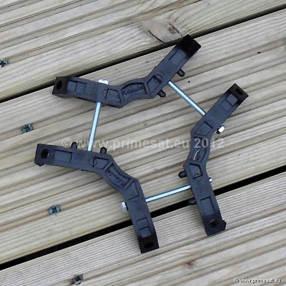 Feed support boss only. Feedhorn / LNB not included. The Primesat feed support boss (No 2) has longer boltsfor 60mm necks. If your prime focus dish has a Ku band feed support boss and will not adjust to a60mm neck, this option is available. The 3 arms can be bolted to this feed support bossand the C Band LNB will then fit. The support boss has two angles to choose from as far as interfacingwith the rods on your dish. Usually the shallower angle holes would be used with larger dishes. Withthis support boss, a c band feedhorn can be fitted any prime focus dish that uses 3 arms althoughthe bolts at the ends of the rods may need to be altered to suit the size of the holes in the boss.Adjustable up to and including 60mm for the 60mm neck of the C band feedhorn.