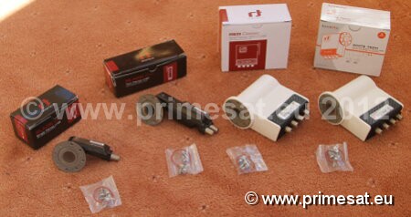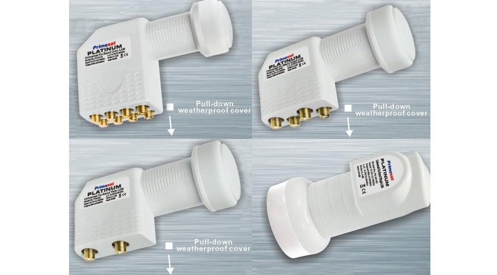 Primesat Platinum single, twin, quad, quatro and octo 0.1dB LNBs.