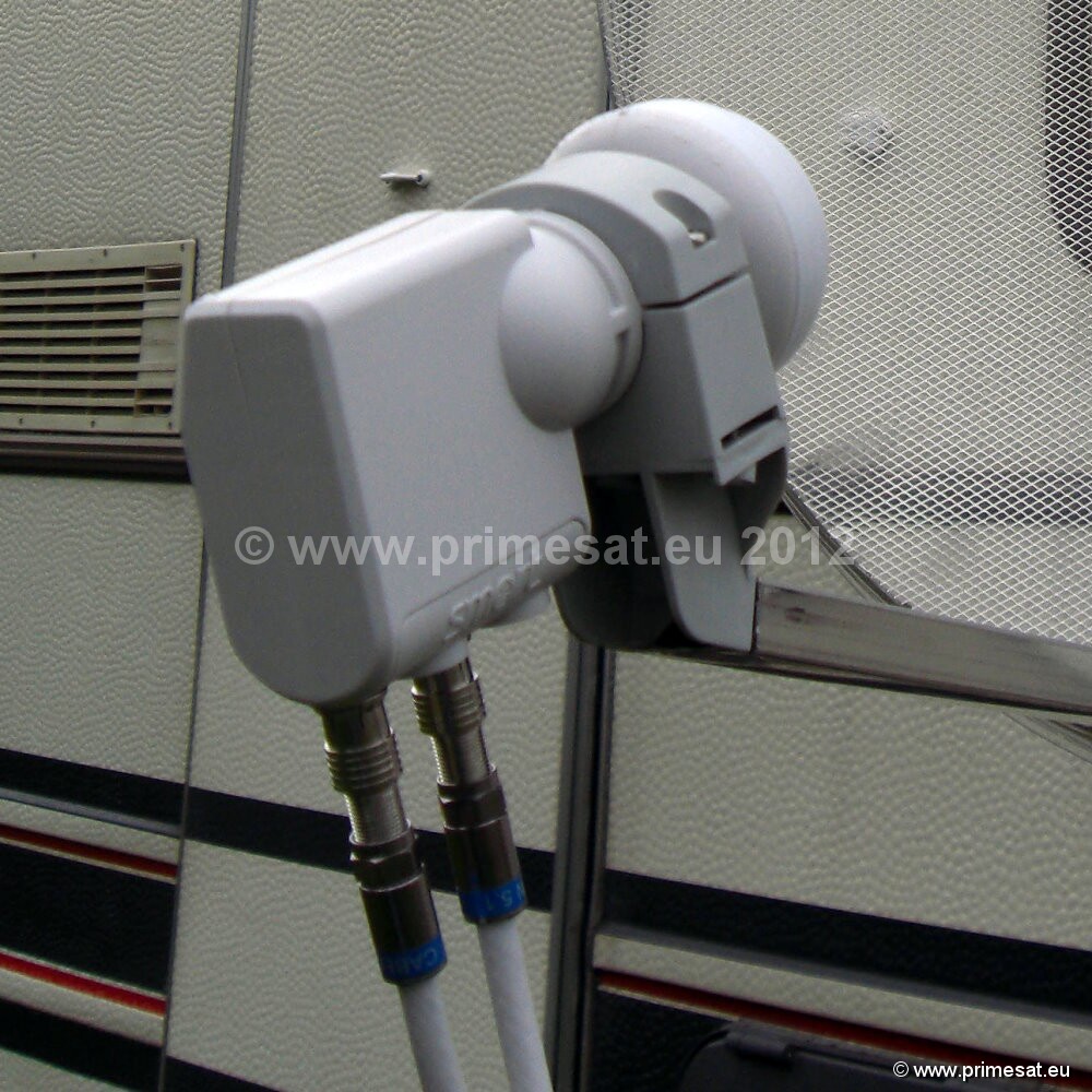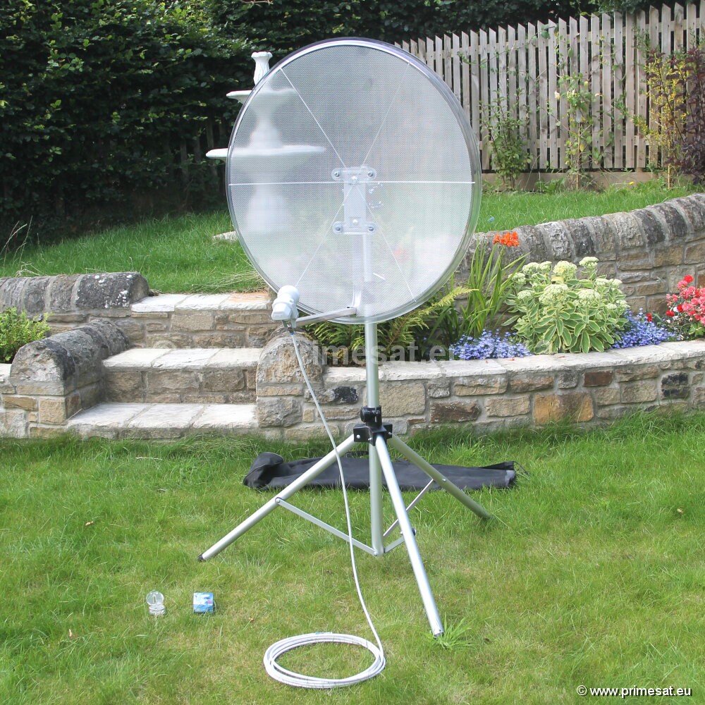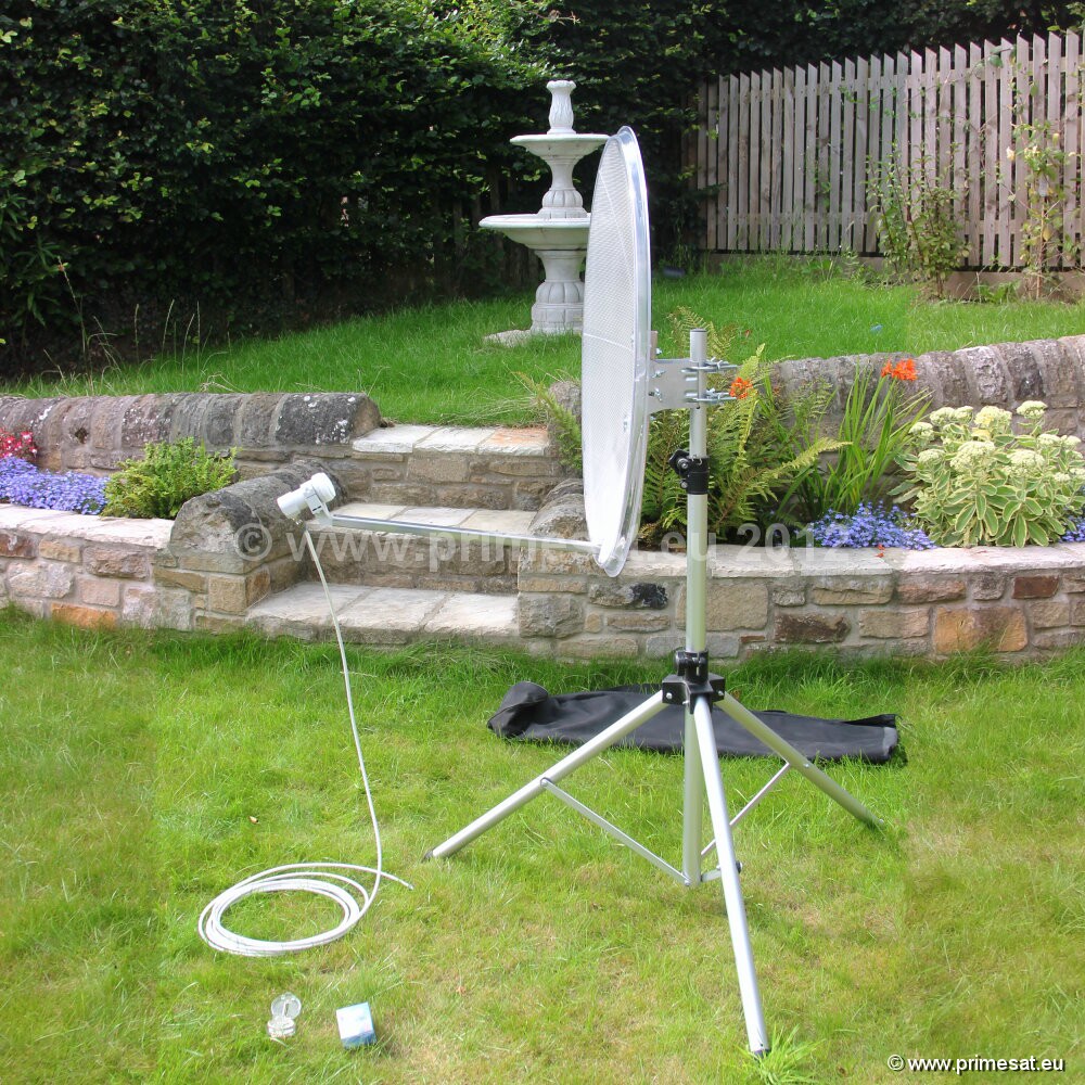 60cm transparent mobile caravan dish kitClear dishes are made of fairly soft plastic (compared to metal) and will not harm anything in thecaravan (when it is being carried in and out) or car boot while being deployed or stowed away flat.Even the bracket on the back of the dish is now transparent.The dish has a removable push fit LNB arm This dish kit works far better than those small,often only 45cm, caravan dishes from caravan centers.Primesat transparent dish. Titanium LNB, folding stand, 20m made up cable and Lensatic Compass If used with twin tuner receivers like Sky +, Sky HD, Freesat twin tuner etc. it is possible to upgradethe single LNB to a twin LNB and the single cable to twin cable This is the Titanium third edition 0.1dB LNB which is widely praised on many web sites.The third edition has the gold connections and is very low noise. An ultimate performance LNB.20m of white, made up digital cable (white looks better than black for outdoor use.) The cableis fully made up with connectors fitted on both ends. Professional compression F connectors are used fora tight durable watertight seal. No tape needed. A very high quality push fit f connector adaptor isincluded on one end of the made up cable for very fast connection to the LNB.Deluxe lightweight aluminium folding ground stand. The pictures show the dishon the deluxe stand. The stand has holes at the end of the legs for pinning down with tent pegs (included).This is the deluxe UK model (beware of Chinese copies that fall apart after being used a couple of times) now with a 500mm height extension. Good for looking over obstacles but also ideal for raising the dish to an easy height for assembly without bending down. The complete kit is packaged withour own detailed setting up instructions based on 21 years experience of both satellite TV andcaravan touring all over western and eastern Europe. These instructions detail all of the shortcutsfor fast setting up and satellite location. If you need a satellite meter (if you don't have one, you will need one,) check out the Lexium Fastalign 5110 meter. If used for Sky or freesat from Astra 2 at 28E this dish is ideal fortouring in the UK and should receive all Sky and freesat channels as far southas Paris however, we would recommend the 85cm transparent kit below if youintend going to the south of France.