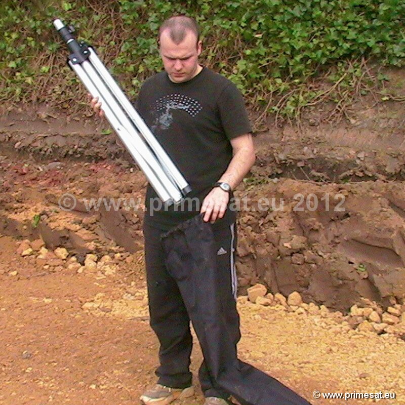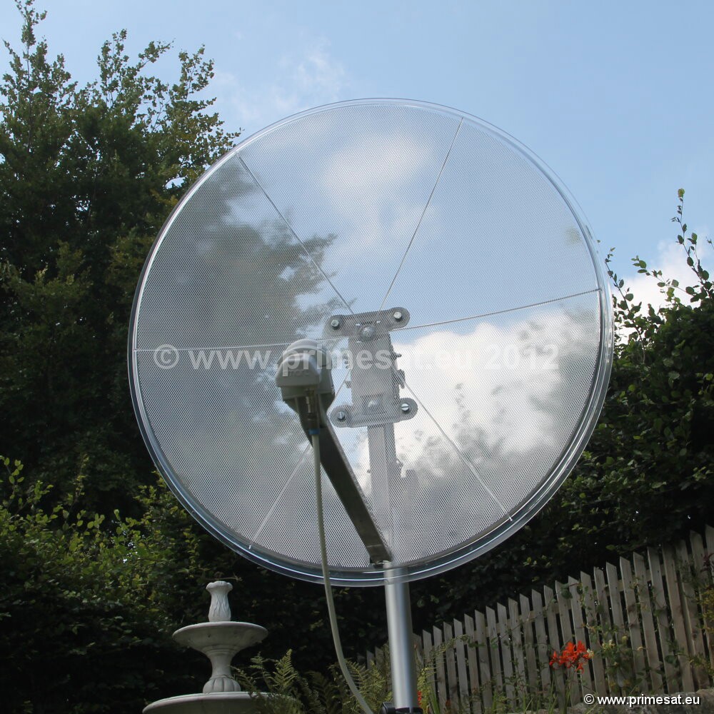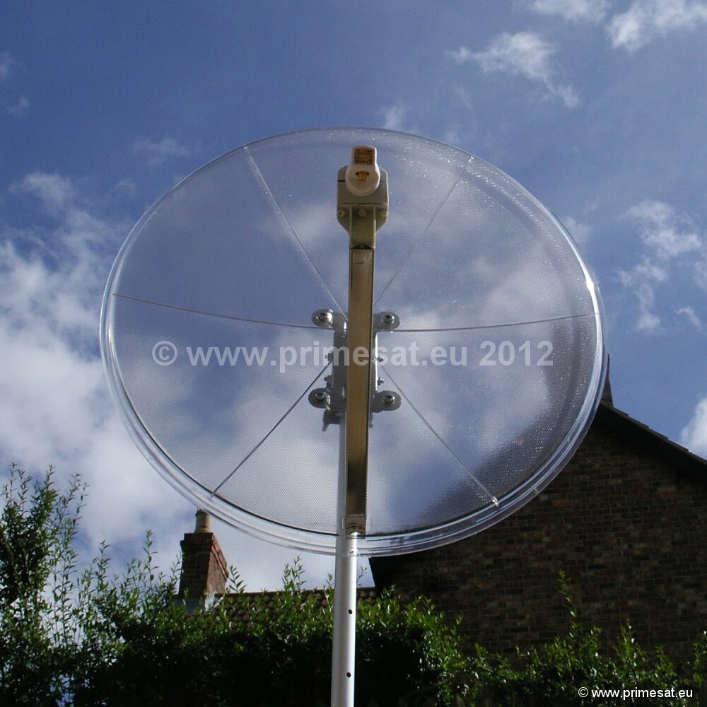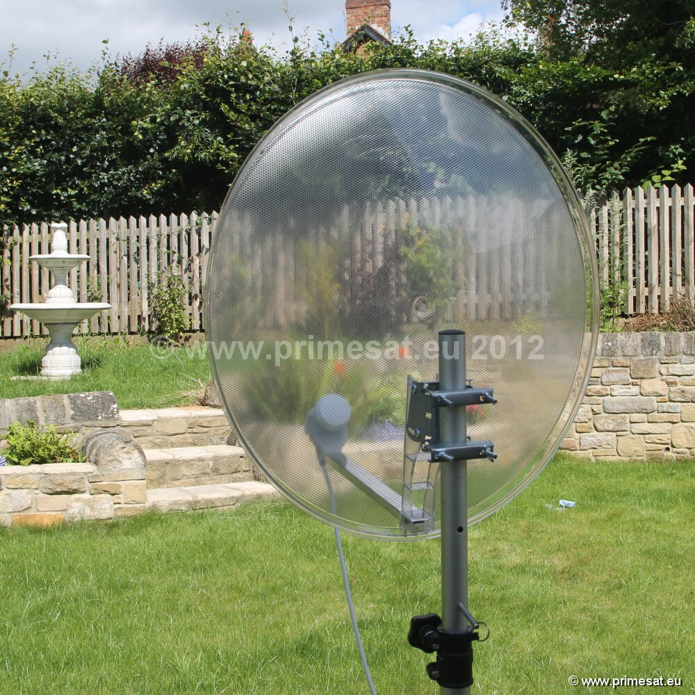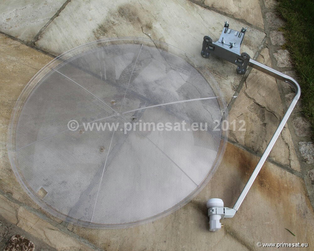 Clear dishes are made of fairly soft plastic (compared to metal) and will not harm anything in thecaravan (when it is being carried in and out) or car boot while being deployed or stowed away flat.The new Primesat clear dish does not have a folding arm but does have many new improvementscompared to the previous model. Wing nuts mean it still will only take a couple of minutesto put it together. Ribs on the back make it rigid and very strong.Primesat transparent dish. Titanium LNB, folding stand, made up cable and Lensatic CompassIf used with twin tuner receivers like Sky +, Sky HD, Freesat twin tuner etc. it is possible to upgradethe single LNB to a twin LNB and the single cable to twin. This is the Titanium third edition 0.1dB LNB which is widely praised on many web sites.The third edition has the gold connections and is very low noise. An ultimate performance LNB.20m of white made up digital cable (white looks better than black for outdoor use.) The cableis fully made up with connectors fitted on both ends. Professional compression F connectors are used fora tight durable watertight seal. No tape needed. A very high quality push fit f connector adaptor isincluded on one end of the made up cable for very fast connection to the LNB.Deluxe lightweight aluminium folding ground stand. The pictures show the dishon the deluxe stand. The stand has holes at the end of the legs for pinning down with tent pegs (included).This is the deluxe UK model (beware of Chinese copies that fall apart after being used a couple of times) now with a 500mm height extension. Good for looking over obstacles but also ideal for raising the dish to an easy height for assembly without bending down.The complete kit is packaged withour own detailed setting up instructions based on 20 years experience of both satellite TV andcaravan touring all over western and eastern Europe. These instructions detail all of the shortcutsfor fast setting up and satellite location. If you need a satellite meter (if you don't have one, you will need one,) pleasecheck out the Lexium Fastalign 5110. If used for Sky or freesat from Astra 2 at 28E this dish is ideal fortouring in the UK and as far south as the south of France